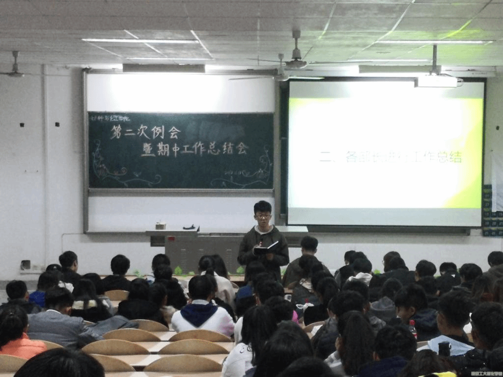 学生会于2018年11月18日下午6时在教一-104召开工作中期总结会议。材料与化工学院学生会主席团、各部门部长及全体干事参加本次会议。