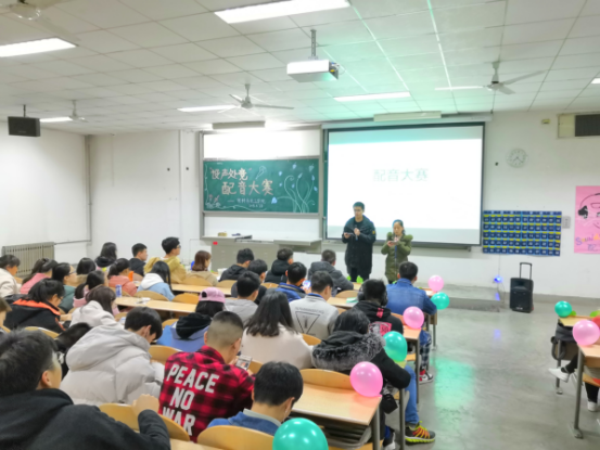 比赛开始前,工作人员认真布置活动场地,接着组织选手签到并抽签决定出场顺序。比赛开始,首先由主持人依次介绍到场的嘉宾,观众席以热烈的掌声对他们的到来表示感谢。随着比赛的进行,参赛的各组选手们都使出浑身解数,以饱满的感情对节选的影视作品进行配音。在场的评委和观众都被他们的声音所吸引,他们的精彩表现使得教室里始终回荡着欢声笑语。随后,主持人宣布前十组得分并进入中场游戏“听伴奏猜歌名”环节,观众们的积极性再次被调动起来,争先恐后地举手回答问题,热闹非凡。中场结束,下半场的比赛依然十分精彩,所有参赛小组结束表演后由主持人公布得分情况,最后结果在线上投票环节结束后公布。至此,此次大赛圆满结束。