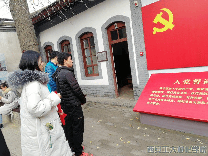 广大团员青年去认真学习。随后,大家参观了当时的报纸,各种会议记录的手写版真迹以及革命先辈们穿的衣服等,它们已经泛黄,但还原了历史,见证了革命的发展。最后,大家来到入党誓词前认真阅读并拍照留念,铿锵有力的朗诵声中,绽放出的,是对革命先辈的崇高敬意。至此,本次党课实践活动圆满结束。