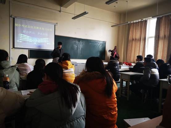 此次班会分为三个流程进行。首先由班主任杨晶晶老师对全班高数期中考试成绩进行了分析以及提出班级同学之间帮扶措施,同时全班高数第一张国龙与同学们分享了自己的学习心得,学习是要靠坚持的。其次由班长和团支书分析了此次考试的问题所在,课堂问题、作业问题等。最后班主任提出后期的复习计划,指出学习要有计划,鼓励同学们多问问题。至此,本次班会圆满结束。