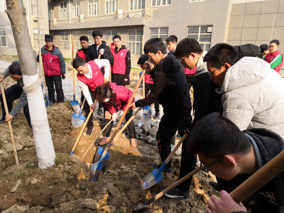 青年志愿者协会于2019年3月9日8时30分在工科一楼东侧举办“播种绿树,播撒希望”植树活动,我校后勤集团李斌老师及2018级志愿者队伍参与此次活动。