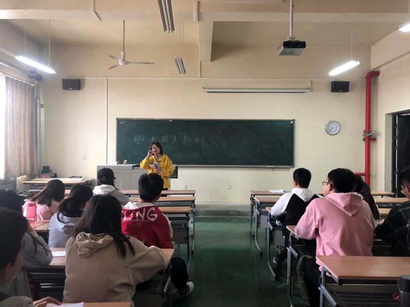 会议伊始,刘强珺老师给大家详细地介绍了五四评优的意义,号召各班长团支书鼓励自己班级优秀学生积极参与到此次评优当中。其次,刘老师将有关创建“文明宿舍”的相关细节做了具体的说明,她强调:不仅要注重宿舍的卫生纪律、营造舒适的生活环境。更是要在其中增进友谊、丰富宿舍文化,营造共同进步的学习环境。辅导员老师也会定期抽查,同时对评为“文明宿舍“的宿舍进行了奖励。最后,刘老师对于即将到来的运动会做了一次强有力的动员。她表示这是一次展示拼搏风采,彰显合作精神的机会,并鼓励学生参加比赛,用一个充满激情的心去迎接即将到来的阳光体育文化周及运动会。