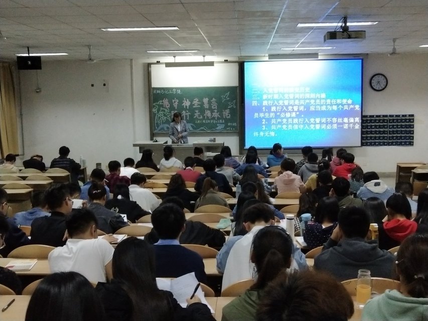 于2019年4月11日晚7时在教二-205开展“信守神圣誓言,践行无悔承诺”主题党课教育。本次党课由校宣传部部长任慧英老师授课。
