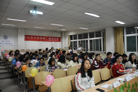 本次比赛由秘书部干事范思诺和邰富豪主持。活动开始,主持人介绍到场评委,宣读比赛规则后请选手依次上台演讲。选手们的演讲各具特色,有的豪情万丈,有的饱含深情、发人深思,有的才华横溢、自信洒脱……他们从不同层面、不同角度来畅谈认识、畅谈感想、畅谈体会,展现出当代大学生独特的风采。他们用声情并茂,形象生动的语言诉说着他们心目中英雄艰苦奋斗、积极进取,服务人民的精神。他们用内容真实,生动感人的事迹,诠释着对英雄的认识。台下观众认真聆听,与选手一道思考着“如何成为一个有利于人民的人,如何成为一名英雄?”在中场游戏环节,台上台下交流互动,气氛热烈,一阵阵掌声不时在教室回荡。比赛最后,主持人请评委和前八名选手合影留念,至此,本次比赛圆满结束。