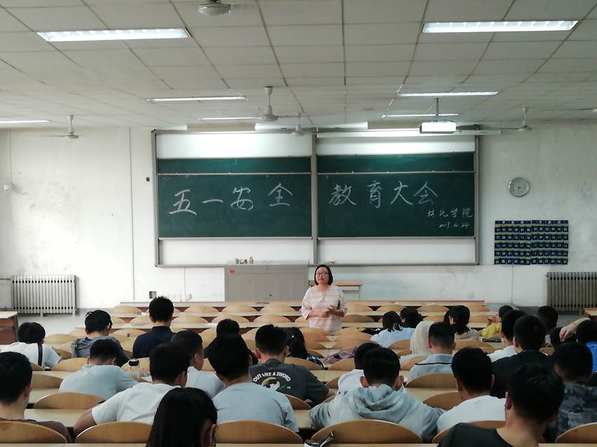 2015级在教一召开了五一安全教育大会。辅导员王亚茹主持本次大会,15级全体学生参加。