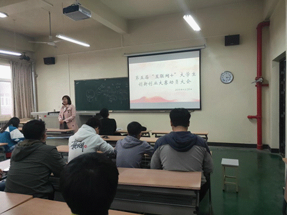 2017级部分学生代表在工3-504召开第五届“互联网+”大学生创新创业大赛宣讲会,2017级辅导员刘强珺参加会议。校科协副主席赵翛涵同学为大家讲解了第五届“互联网+”大赛相关事宜。