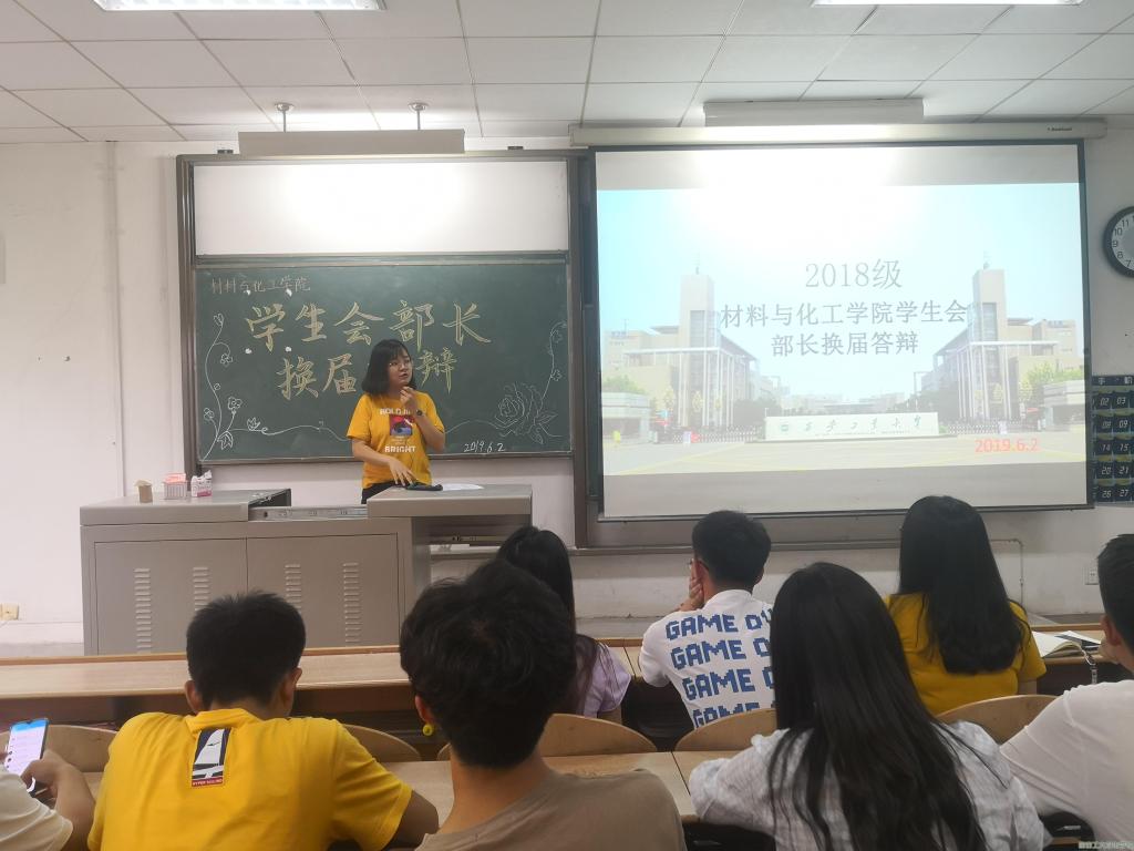 学生会于2019年6月2日下午6时在教二-205举办学生会部长换届竞选大会,学生会主席团及竞选干事出席本次大会。