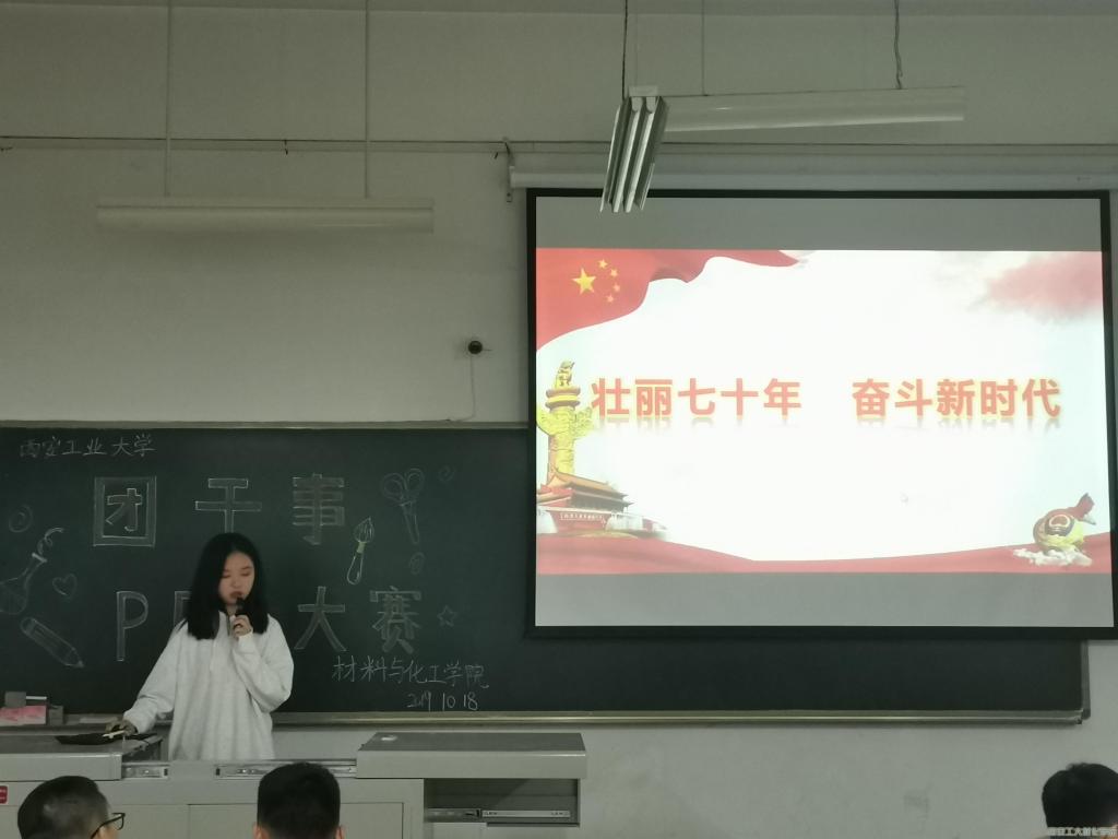 本次比赛在团委宣传部干事王佳琳的主持下正式开始。首先,主持人介绍本次比赛的目的及出席的评委,仔细介绍本次比赛的规则及评分标准并宣布比赛开始。干事们依次上台讲解自己的PPT,有我国的蓬勃发展,也有我国的历史进程,更多的还有博大精深的中华文化,主题多种多样,形式丰富多彩,从各个方面展现出团干事的精神风貌。接着在每位同学精彩纷呈的讲解后,评委团都会详细的剖析每个人的PPT并进行打分,肯定出色的方面,指出不足的地方,让每个人都受益匪浅。最后,学生组织团委副书记刘锐用以往的优秀PPT为大家做出详细的讲解,并针对PPT制作的共性问题做出强调。随后在主持人的宣布下,本次比赛圆满结束。