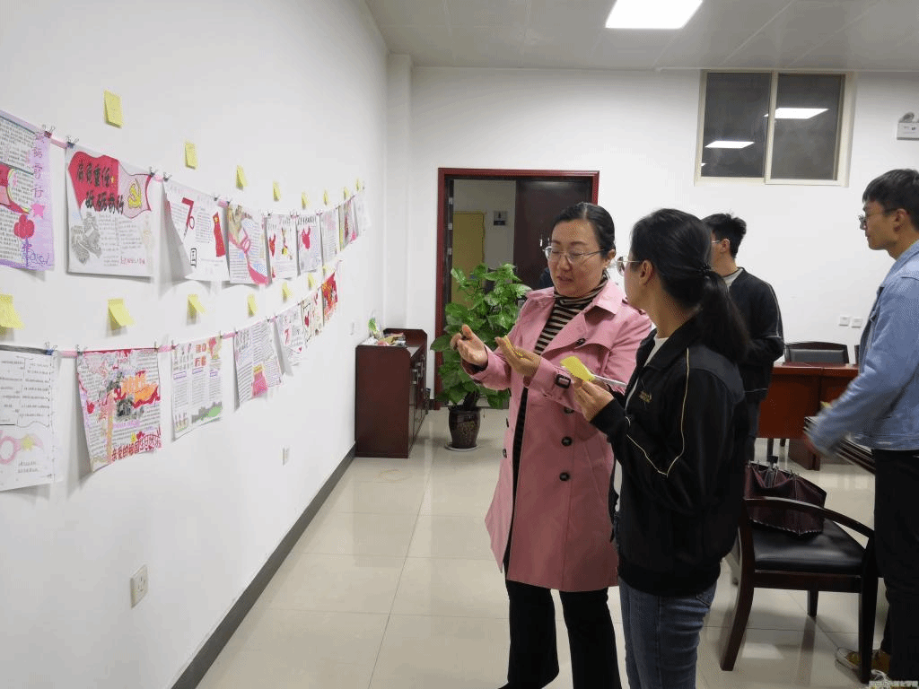 本次活动由青年志愿者协会会长李天宇和副会长田晨曦主持。中午12时,工作人员带着手抄报前往工三-410进行场地布置,12时30分评选人员全部到场,由工作人员进行介绍后活动正式开始。看着一幅幅制作精美、主题鲜明、色彩搭配合理的手抄报,团委书记段强,副书记乔娜老师对19级同学的作品表示高度赞扬,肯定了同学们的付出。同时,党委副书记张艳霞老师表示通过本次活动充分体现出了同学们认真负责的态度,参加活动的积极性,希望在今后的学习生活中能一直保持这种态度,展现青年学生奋发有为、积极向上的精神面貌。本次评选活动在大家的高度赞扬声中圆满落幕。