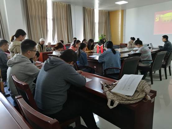 大会开始,由支部书记王潇带领全体支部党员对习近平在庆祝中华人民共和国成立70周年大会上的讲话进行了学习,习近平总书记提出:“70年来,全国各族人民同心同德、艰苦奋斗,取得了令世界刮目相看的伟大成就。今天,社会主义中国巍然屹立在世界东方,没有任何力量能够撼动我们伟大祖国的地位,没有任何力量能够阻挡中国人民和中华民族的前进步伐。”的确,回顾新中国成立的这些年,勤劳的中国人民在这片土地上盖起高楼大厦,在科技上追赶超越,在教育上兢兢业业,今天的成就来之不易,也倍感珍惜。