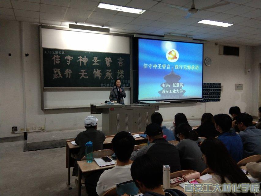 于2019年11月14日晚七时在教1-102开展“信守神圣誓言,践行无悔承诺”主题党课教育。本次授课由学校宣传部部长任慧英老师主讲。