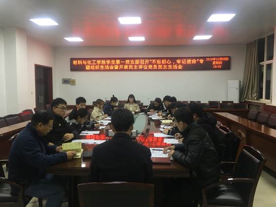 本次会议由党支部书记王国栋老师主持。会议开始后,首先王老师向会议总结了开展“不忘初心、牢记使命”主题教育以来,学生第一党支部在理论学习、开展活动、交流总结方面的情况。并指出支存在的问题以及整改措施。随后,全体党员从学习《习近平关于“不忘初心,牢记使命”论述摘编》、《中国共产党廉洁自律准则》和党员先锋模范作用三方面进行问题检视,谈感悟、找差距。接着,进行党内批评,支部党员针对自己看到的支部内某些党员身上的缺点和不足进行批评。深刻理解“不忘初心、牢记使命”的精神内涵,作为一名新时代大学生党员,善于在批评与自我批评中意识问题,改正问题,使党组织始终保持先进性。