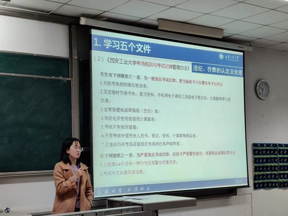 学生纪律处分实施办法》,告诫同学们不要存有侥幸心理,一定要遵守考规考纪,诚信应考。