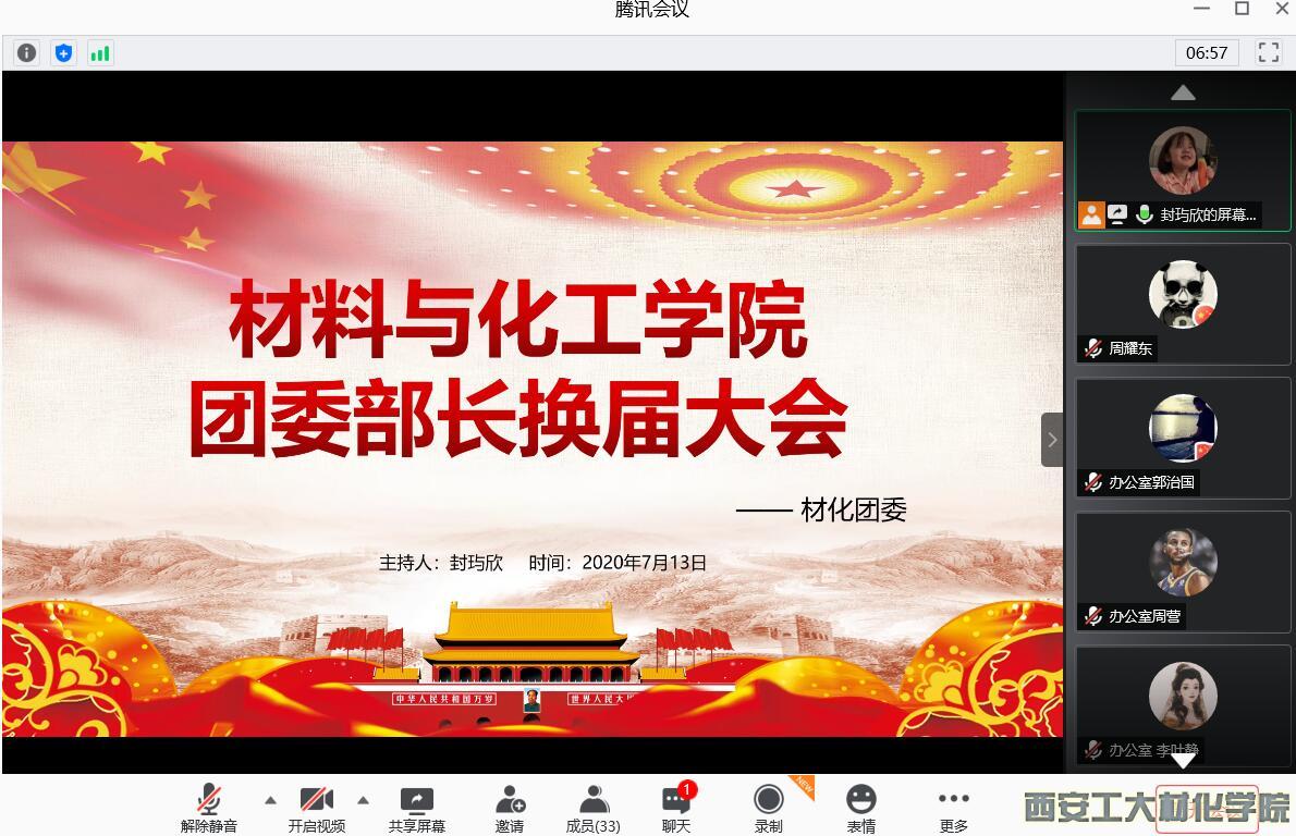 团委于2020年7月13日晚上19:00举行线上干部换届大会。团委副书记周耀东及团委全体成员参加本次换届大会。