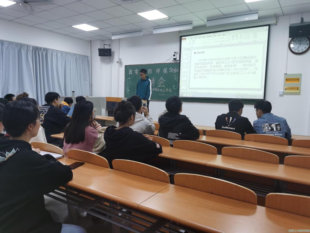 学生会文体委员会于2020年11月6日晚7时在教3-207召开“我有我的环保style”宣讲会。学院近80名参赛学生以及学生干部参加本次会议。