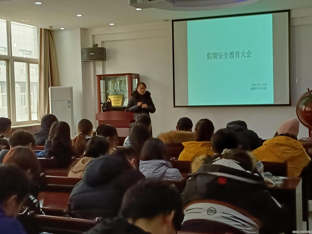 会议开始,辅导员张瑞红老师宣读近期学校关于学生放假情况的安排,通知学生尽快结束考试并回家。接着辅导员张瑞红老师强调,冬季是各类安全事故多发的季节,要求学生做好对寒冷天气的防范工作;要求学生待期末考试结束后及时回家,不要在人多的场所停留过久;出门一定做好安全防护措施,保证戴好口罩;如果出现特殊情况及时上报。要求各班学生干部起好带头作用,及时监督学生每天的打卡情况,并及时向辅导员汇报打卡情况及学生的身心健康状况。