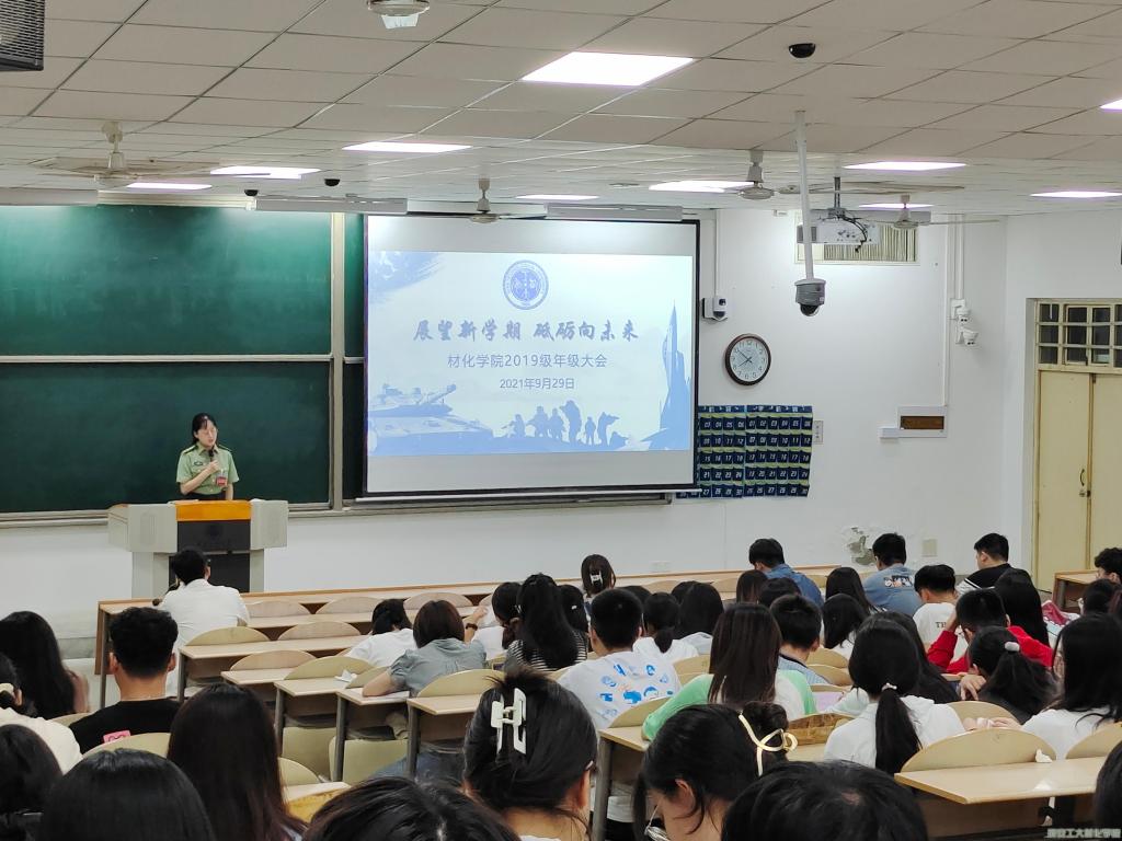 2019级于2021年9月29日晚7时在教1-102召开了“展望新学期,砥砺向未来”新学期年级大会,会议由辅导员乔娜主持,2019级387名学生参加会议。