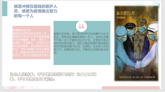 通过此次线上防疫班会,给每一个同学带来了一份安心,帮助大家正视生命,缓解压力,用更美好的眼睛去看待身边的一切,大家也学习了一些缓解压力的方式,促使大家以一个更加健康的心态去战胜疫情!