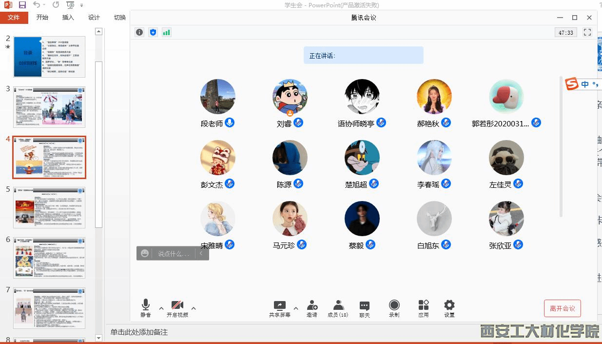 团学组织于2022年3月24日晚通过线上会议召开本学期活动答辩会议。本次会议由学生干部刘睿主持召开,团委书记段强和团委副书记乔娜携团学组织学生干部共18人参加本次会议。