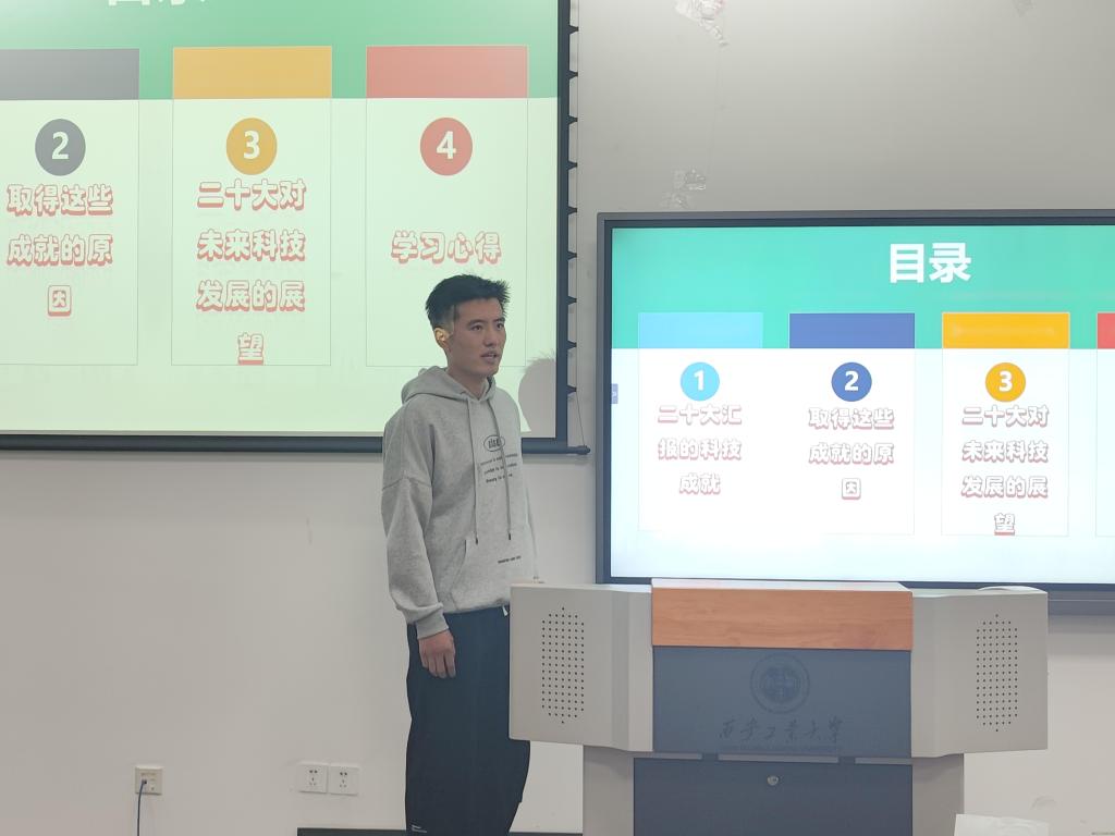 本次比赛分为初赛和决赛两部分。初赛为由参赛选手讲述家乡党员故事,参赛选手在这一环节中通过一个个鲜活而生动的党员故事,充分表达了对家乡优秀党员的向往与尊敬,表达了青年团干切实提高自身的思想政治素养、坚定理想、向优秀共产党员看齐的坚定信念。最终有10名选手脱颖而出,进入决赛。决赛中,选手通过微团课,分别从经济、法制、民生、科技、党建五个方面深入解读党的二十大报告。各个参赛选手切入角度多样、展现形式灵活、感悟深刻,用自己的真情实感诉说着赤诚信仰和热忱情怀。大家通过PPT与视频相结合地形式生动透彻地展示了这五年间我国在经济、法制、民生等各个方面取得的卓越进步,带领现场观众深入浅出地学习祖国发展取得的新成就。在比赛过程中,各位参赛选手不仅表达了坚定贯彻落实党的二十大精神,坚持党的领导,更展示出做好青年团干带头作用的坚定决心与信念。经过评委打分,共有六名同学获奖,其中马斌获得一等奖,李仕丹、耿娅萍获二等奖,吴林凌、杨静、孙博文获三等奖。