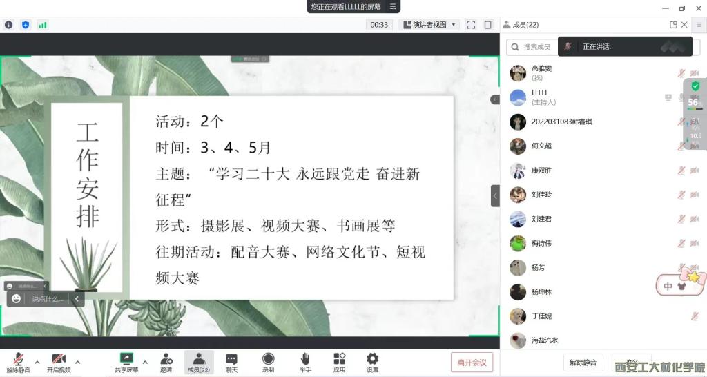 新媒体中心通过线上召开新学期工作布置会,全体学生干部参与此次会议。