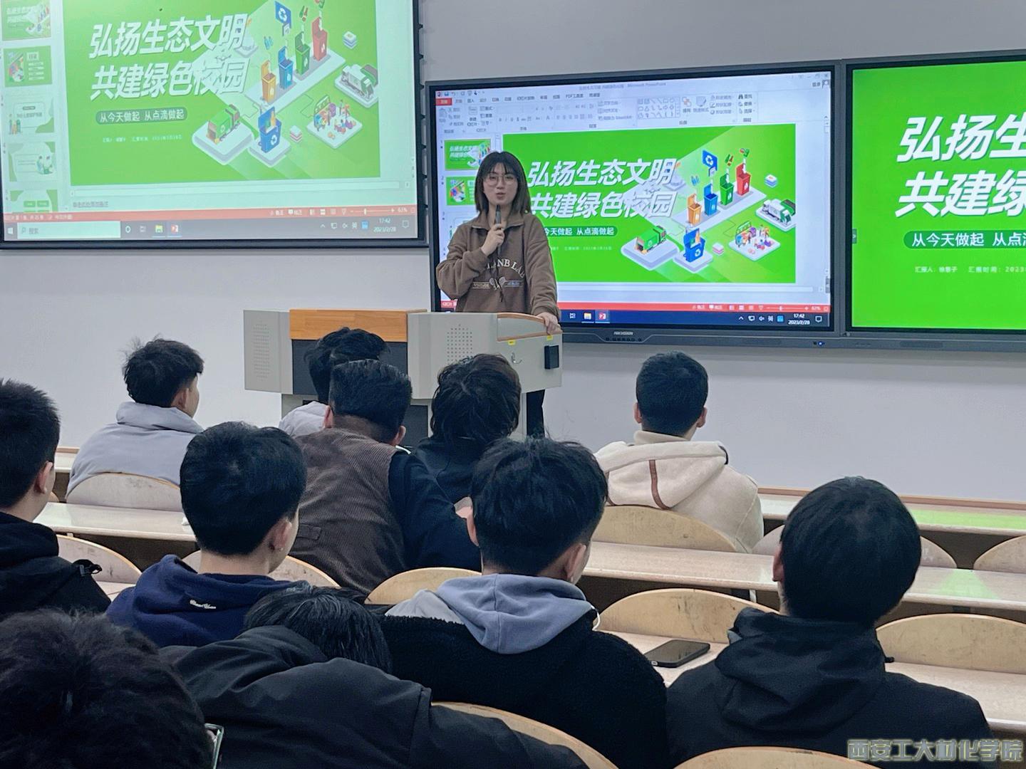 2020级在教2-103教室隆重举行“弘扬生态文明,共建绿色校园”主题教育活动,本次活动由2020级辅导员徐慧子主持,2020级全体学生参与本次活动。