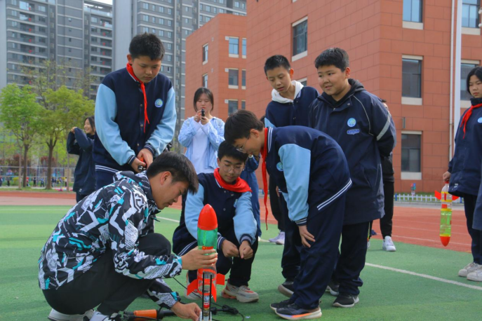 本次试飞指导使同学们对水火箭有了进一步的认识,对水火箭发射原理产生新的理解,从实践中获得新知,从合作中收获友谊。