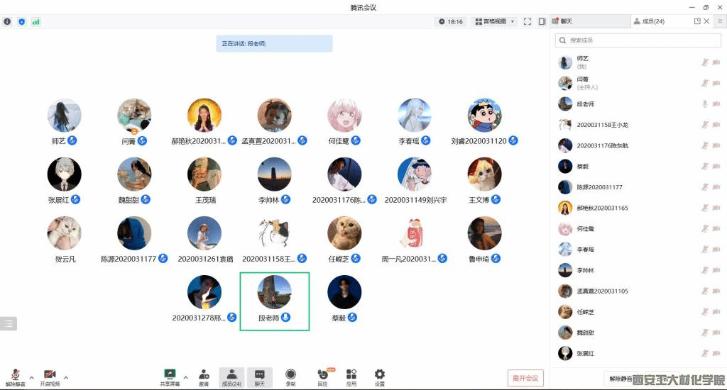 2020级于工3-404,召开全体学生安全教育大会,大会分为线上和线下同时进行。会议由辅导员段强主持。