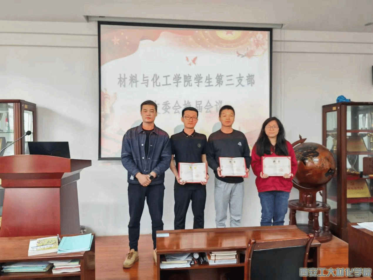 学生第三党支部一年来主要工作及成绩的同时,也提出了今后工作努力的思路和方向。与会人员认真听取了上届委员会工作报告,对支部工作有了更清晰的认识,同时表示会积极配合新一届支委会成员工作,彰显党员的先进性与责任感。随后,支部书记段强宣布新一届支部委员会成员姓名,闫菁当选为支部副书记,白旭东当选为组织委员,刘睿当选为宣传委员。最后,支部书记段强为上一届支委会成员颁发了聘书。