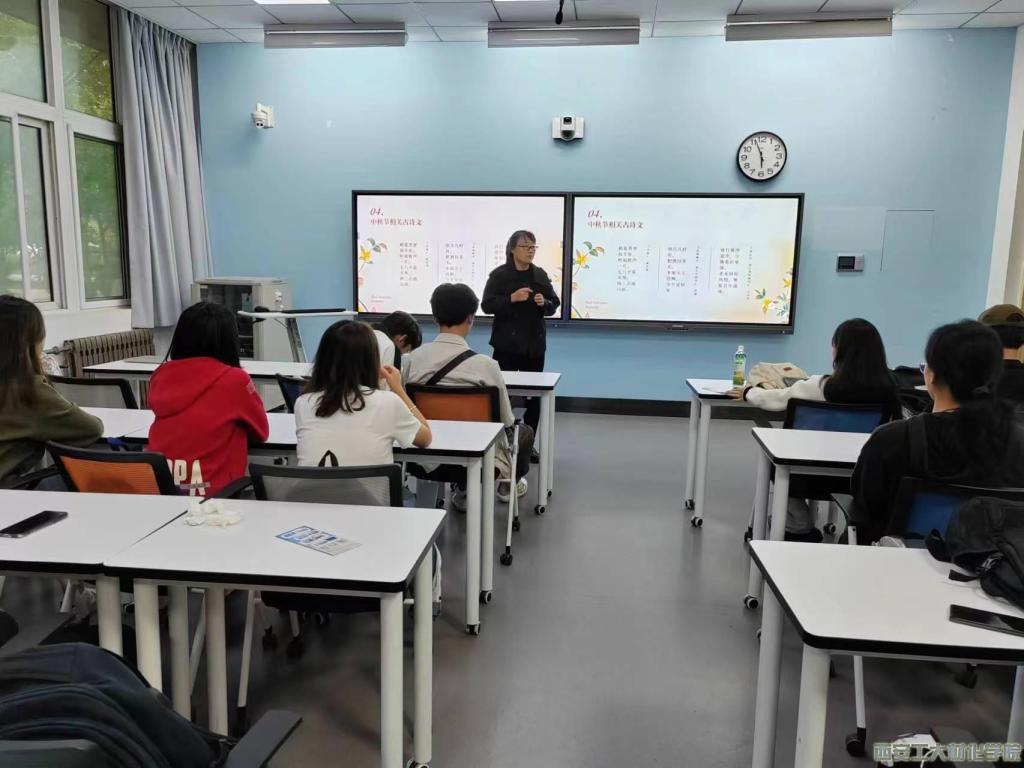 22030313班在教3-106开展中秋主题班会活动,辅导员张瑞红及22030313班全体学生活动。
