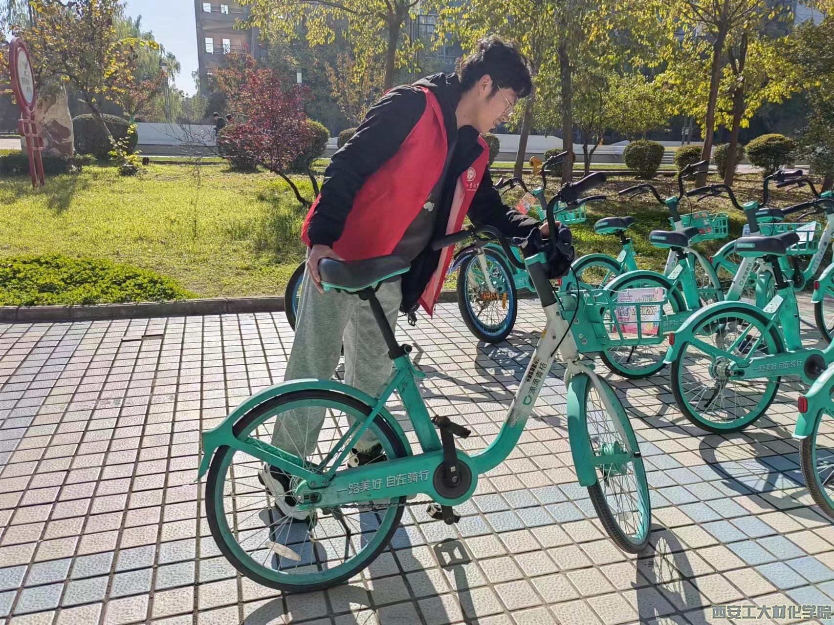 活动当天,志愿者们统一着志愿者服装,手持清洁工具,分为两队,分别对教学楼区域和学生公寓区域开展志愿服务。活动开始后,志愿者们首先对共享单车进行了彻底的清扫,将车身上的尘土和污渍清理干净。随后将没有规范停放的共享单车整齐摆放到共享单车停车区。志愿者们仔细认真,将负责区域的共享单车全部打扫干净并归放整齐。志愿服务结束后大家回到集合地点进行合照,至此本次活动圆满结束。