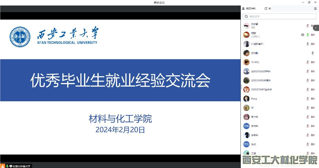 研究生召开线上“优秀毕业生就业经验分享会”。此次分享会邀请学院2023届优秀博士毕业生董雄博作为代表分享就业经验。研究生辅导员胡娜、全体硕士研究生参加会议。