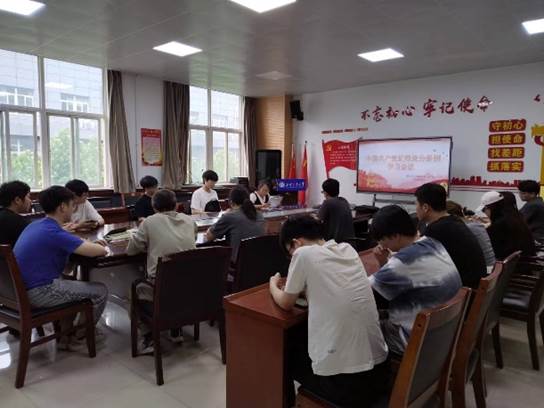 会议开始,支部书记介绍了党纪学习教育的背景、重要意义及主要学习内容,强调要做到学纪、知纪、明纪、守纪。随后,全体党员对《中国共产党纪律处分条例》修订内容第一编总则进行逐字逐句学习,就学习心得进行交流。最后,支部书记要求全体党员严格按照《条例》,规范自己的一言一行,时刻牢记党员身份,发挥先锋模范带头作用。