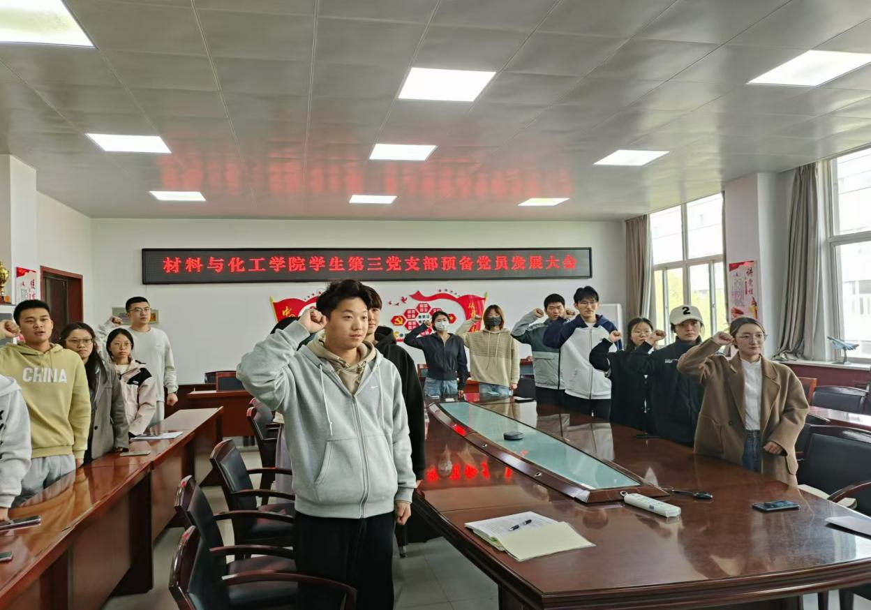 会议开始,支部书记段强着重对预备党员发展工作的程序、发展材料整理接收工作进行了详细介绍,强调了党员发展的严肃性和重要性,并对即将宣誓入党的同志表示热烈祝贺和殷切期望。会上,3名同志分别从对党的认识、入党动机、本人履历、现实表现和其他问题等方面向支部大会汇报了个人情况,并表明自己坚定的入党决心和信念。随后,入党介绍人王雅婕、秦正洋等同志对发展的党员在考察期内的表现向大会作了相关介绍,并都表明同意并推荐3名同志加入中国共产党。会后支部新老党员共同开展入党宣誓仪式,紧握右拳,庄严宣誓:“我志愿加入中国共产党……”"铿锵有力的誓言,不仅是对党的忠诚与承诺,更是对未来的坚定信念与决心。