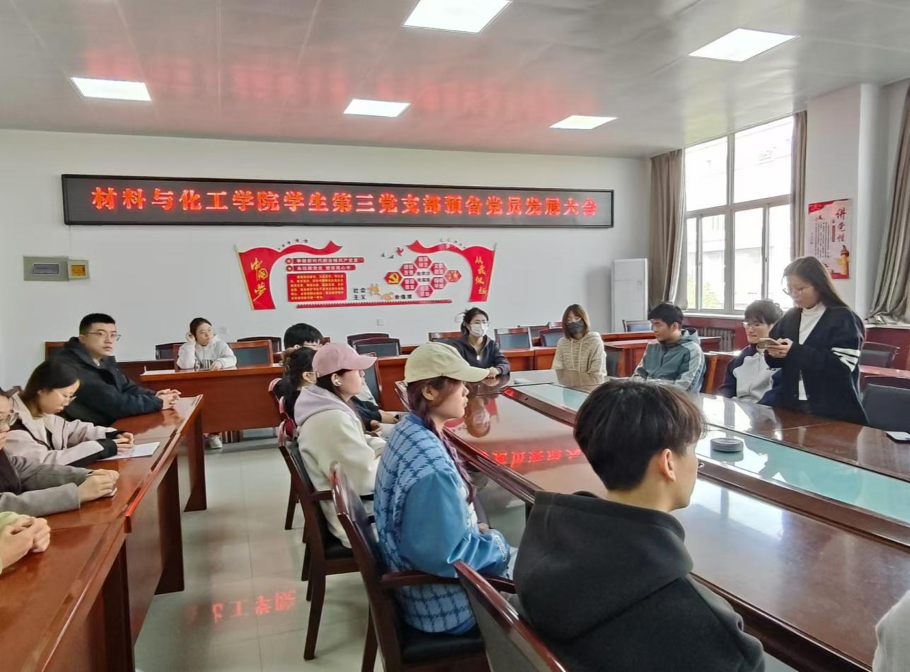 学生第三党支部于工三-410会议室召开接收预备党员大会。本次会议是严格按照组织程序,在经过组织考察、政治审查、党校培训、广泛听取党内外群众意见的基础上,经上级党委批准,召开关于讨论接收王大洋、任欣好等3名同志为中共预备党员的支部大会。