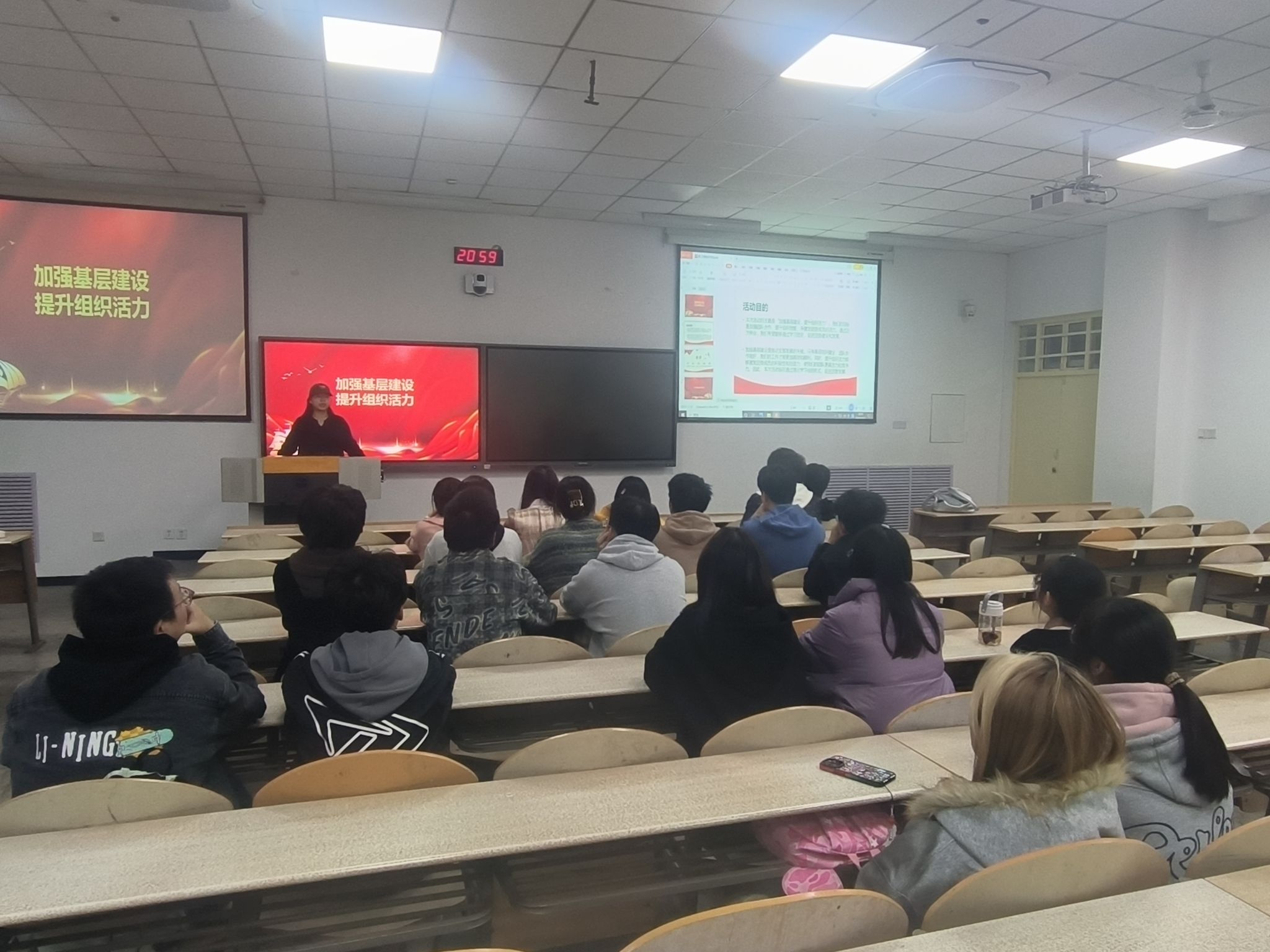 会议伊始,张诗月介绍了共青团的使命、性质及其奋斗历史。其次,张诗月围绕青年如何加强基层建设、提升组织活力这一主题,从多个维度进行了阐述。其中重点强调了团员青年应不忘初心跟党走,将个人的理想追求融入到党和人民的事业之中,为实现中华民族伟大复兴的中国梦贡献青春力量。随后,与会人员分享了各自在团组织建设过程中的经验与困惑。大家围绕如何创新团支部活动形式、增强团员参与度、提升团支部凝聚力等问题展开了热烈讨论。最后,张诗月以党的二十大报告中对广大青年的深切期许作为结语,鼓励大家以更加饱满的热情、更加昂扬的斗志,投身到新时代的伟大征程中。