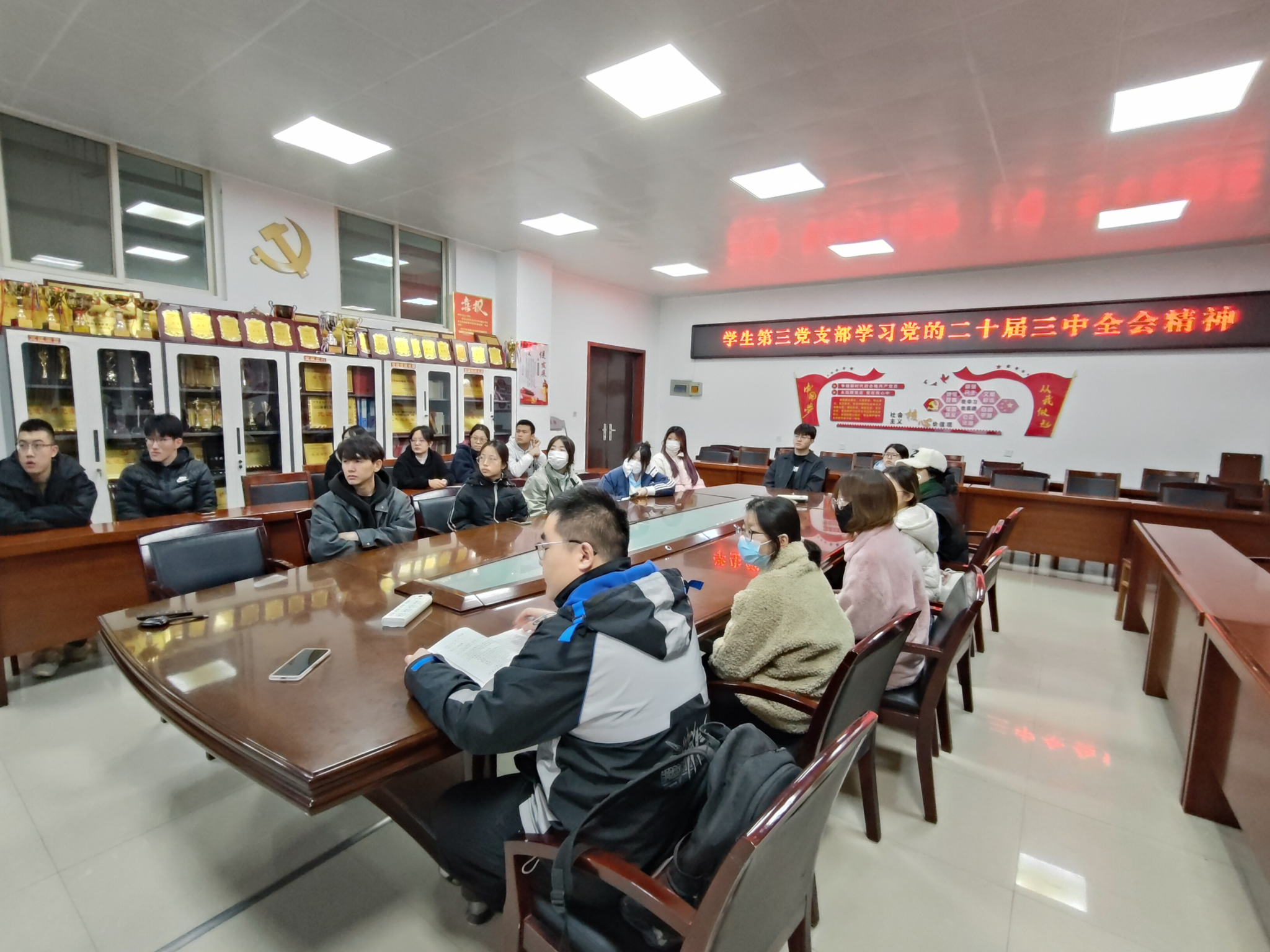 会上,段强带领大家回顾了召开党的二十届三中全会的重大意义和深远影响,并指出全会是在以中国式现代化全面推进强国建设、民族复兴伟业的关键时期召开的一次十分重要的会议。学习过程中,段强与全体党员深入学习《中共中央关于进一步全面深化改革、推进中国式现代化的决定》相关内容,带领大家了解核心要义和精神实质。讨论环节中,支部党员亢林田谈到:要坚持学以致用,把学习贯彻全会精神与做好本职工作紧密结合起来,真正做到互相促进、务求实效;党员王雨婵表示在今后要充实理论知识学习,并与实践活动有效结合起来,提升自身的综合素质,将来为社会的发展积极贡献力量。随后,段强以“你若盛开 清风自来”优秀学生党员能力养成为题,从树立正确三观、提升综合素质、培养创新能力、加强党性修养四个方面开展党课教育,并强调全体党员要筑牢政治忠诚、强化责任担当,深刻领悟“两个确立”的决定性意义,增强“四个意识”、坚定“四个自信”、做到“两个维护”,要始终站在时代前列,保持一名共产党员的先进性和模范性。