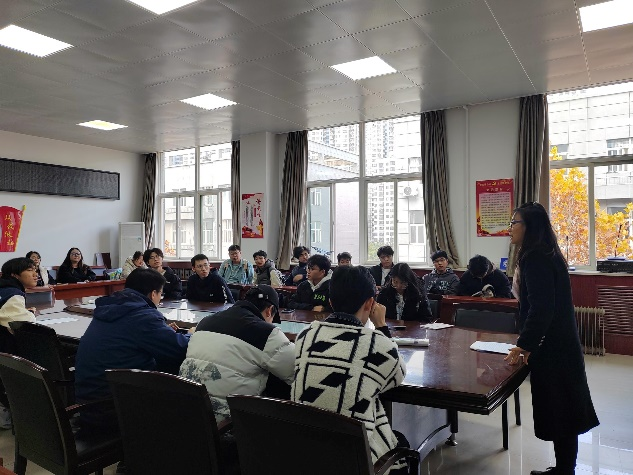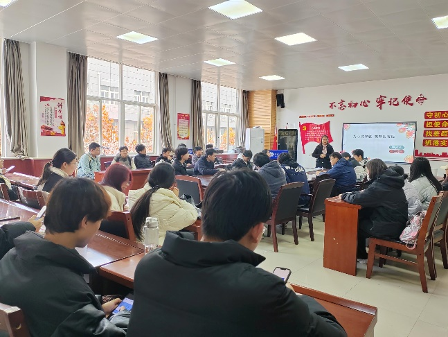 在工3-410召开2022级学生骨干心理健康指导会,会议由辅导员张瑞红主持, 2022级班长、团支书、心理委员和宿舍心理信息员50余名学生参加。