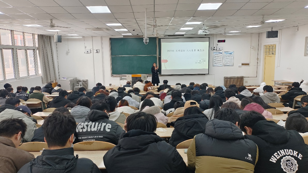 在教1-101召开2022级文明宿舍教育会。本次会议由辅导员张瑞红主持,2022级180余名学生参加。