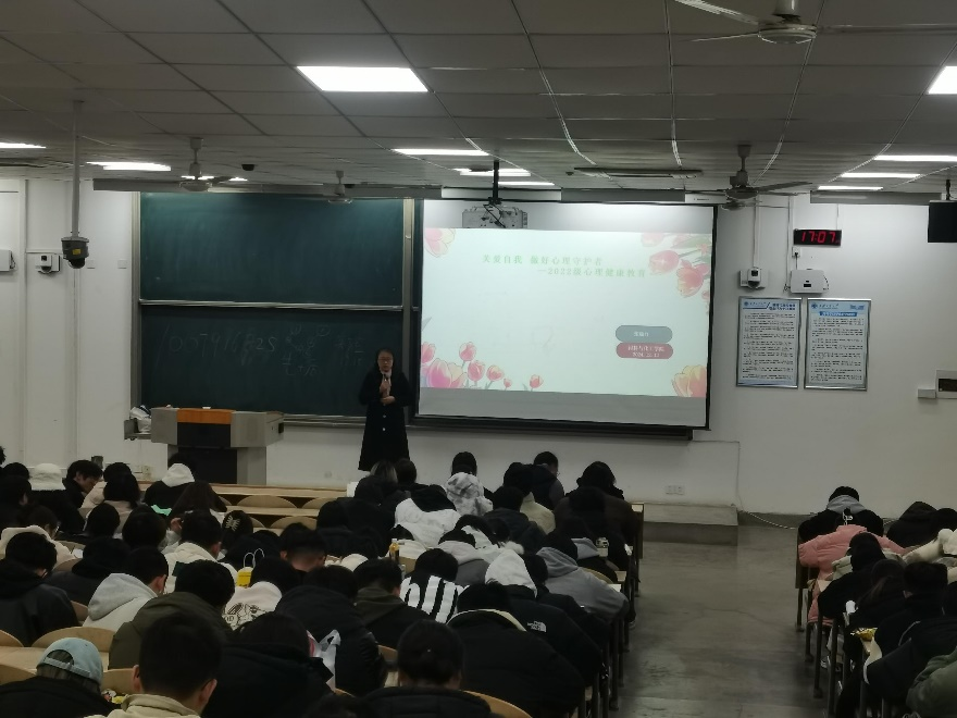 在教1-101召开2022级心理健康教育会。会议由辅导员张瑞红主持,2022级200余名学生参加。