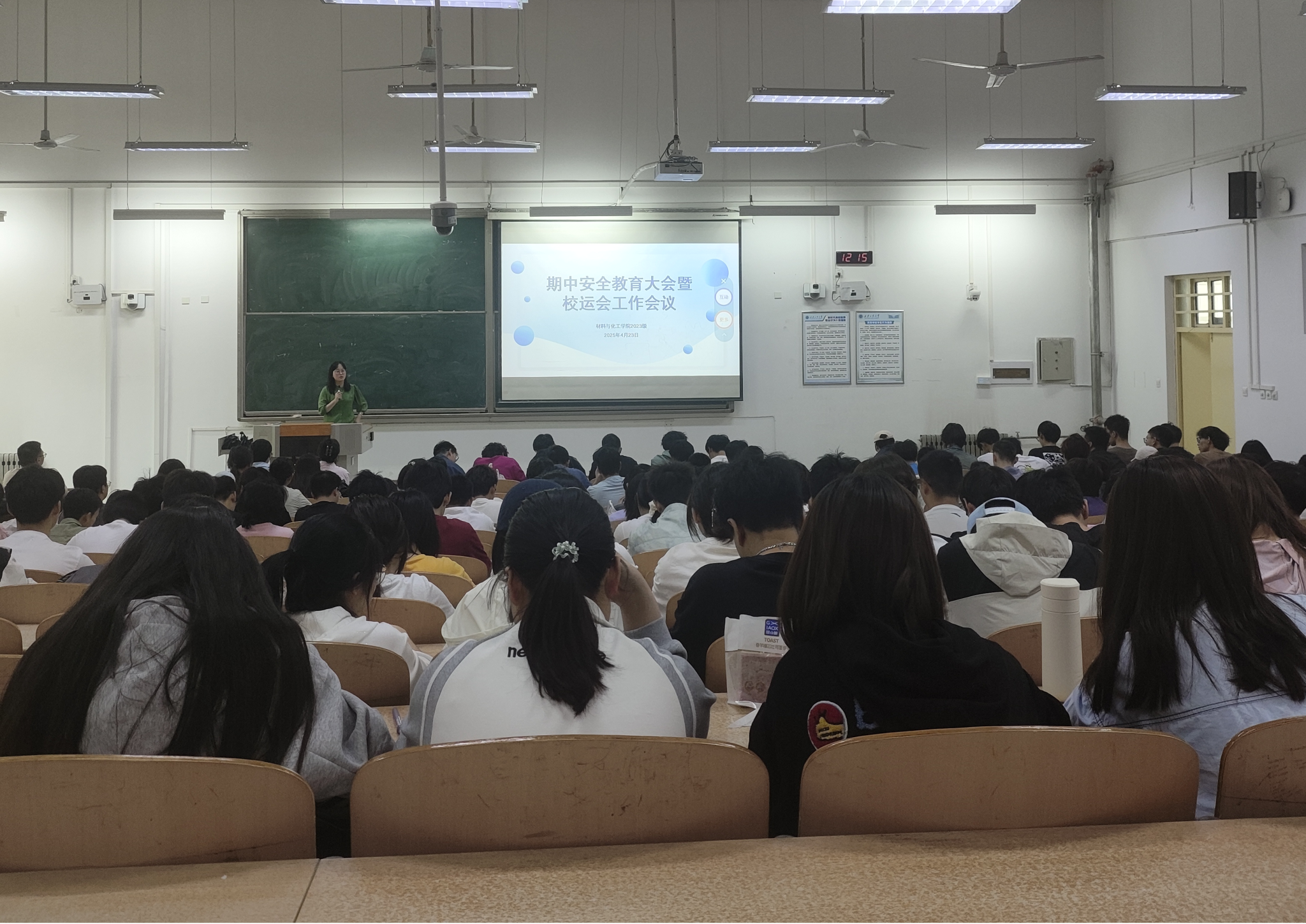 2023级召开期中安全教育大会暨校运会工作会议。辅导员乔娜和2023级全体学生参会,围绕“五一”假期安全教育、校运会部署等重点内容展开深入交流。