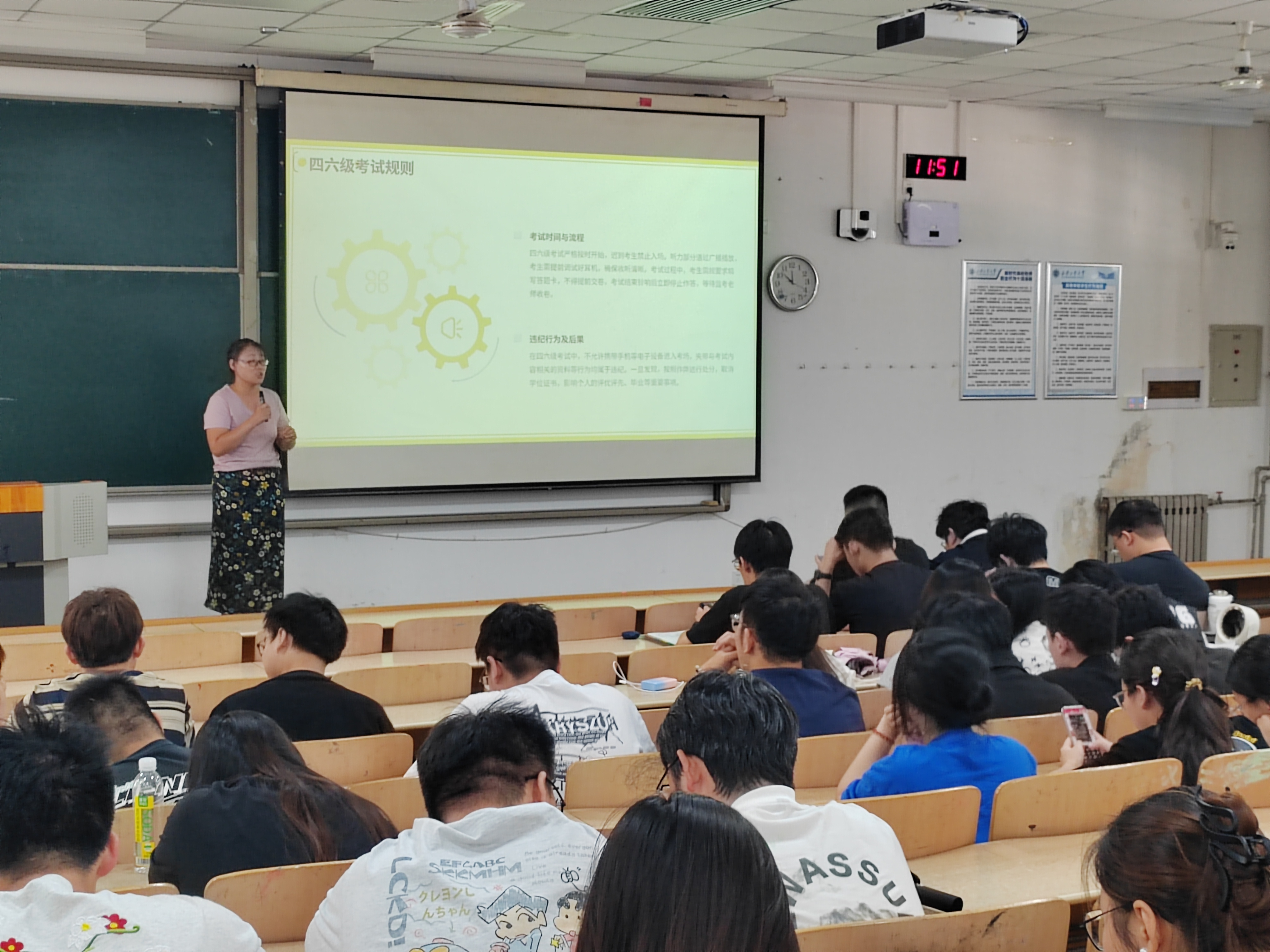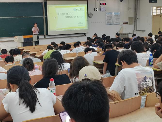 在教1-105召开四六级考风考纪教育。2022 级辅导员张瑞红以及全体2022级学生参加会议。