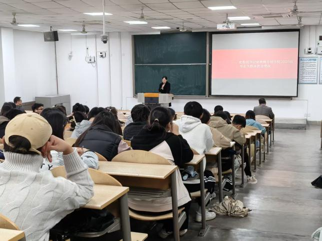 会上,学院党委副书记梁艳峰对2025届毕业生就业情况进行全面总结。她从就业率、就业质量、就业去向分布等方面,详细介绍了2025届毕业生就业整体数据,分析了不同专业就业特点与优势,同时指出当前就业工作中存在的问题,并分享了往届毕业生求职成功案例。随后,学院党委书记陈卫星作2026届毕业生就业动员讲话。他强调,就业是学生成长成才的重要环节,全体2026届学生要树立正确就业观,提前规划职业方向,主动提升专业能力与求职竞争力;学院也将进一步整合资源,搭建就业平台,为学生求职保驾护航,鼓励同学们以积极心态迎接就业挑战。最后,毕业班辅导员张瑞红开展就业指导工作。她围绕简历制作技巧、面试礼仪、求职信息获取渠道等实用内容展开讲解,针对学生常见的求职困惑进行答疑,帮助学生掌握求职核心技能,为后续就业准备奠定基础。
