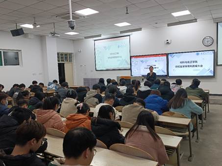 在教2-110召开研究生考风学风教育大会,2023级全体研究生参加会议。会议由研究生辅导员胡娜老师主持。
