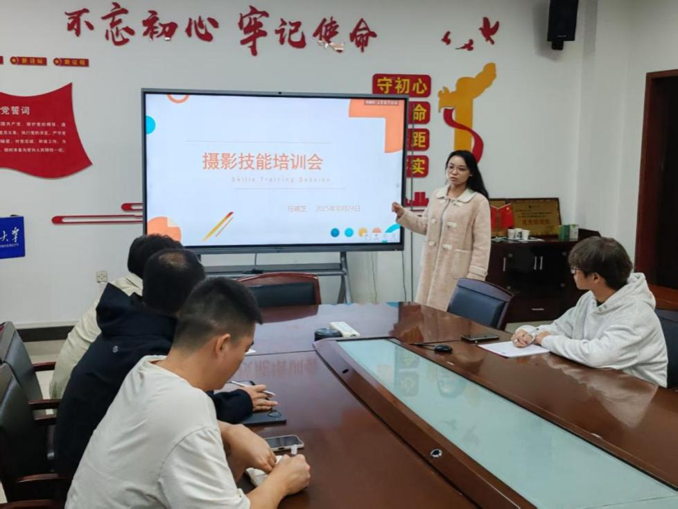 会议伊始,研究生骨干任嵘芝以“理论结合实践,让镜头更有温度”为导向,从宣传工作高频使用的摄影构图法切入,围绕中心式构图、低角度机位、引导线构图三大核心拍摄方法展开系统讲解。她结合学院往期活动纪实、会议记录等真实拍摄案例,生动剖析不同构图法在突出主体、营造氛围、传递信息等方面的应用场景与操作要点,帮助骨干快速掌握理论知识向实践转化的技巧。随后,第四届研究生会成员宋一鸣立足日常宣传工作经验,针对骨干在实际拍摄中常面临的光线把控难题、动态场景抓拍时机等痛点,进行精准的经验分享与技巧补充,通过学习优秀拍摄作品,直观传授调整思路,进一步强化骨干的实操认知。活动过程中,参会成员主动结合工作疑问交流探讨,现场互动频繁、学习氛围浓厚,充分展现了研究生骨干主动提升专业能力、服务学院发展的积极态度。