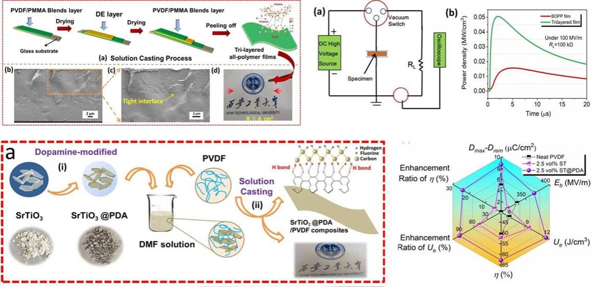 基于电介质表面/界面调控机理,建立-结构、表面/界面工程构筑方法,开发了面向极端环境(高温/高场)下兼具高储能密度、高储能效率与优异稳定性电介质储能材料多层流延制备技术,电介质界面势垒、构成聚合物比例与高场电导损耗的关系、二维材料界面工程增强电介质等相关成果发表在Nano EnergyJournal of Materials Chemistry A等学术期刊并授权发明专利。联系人:陈杰