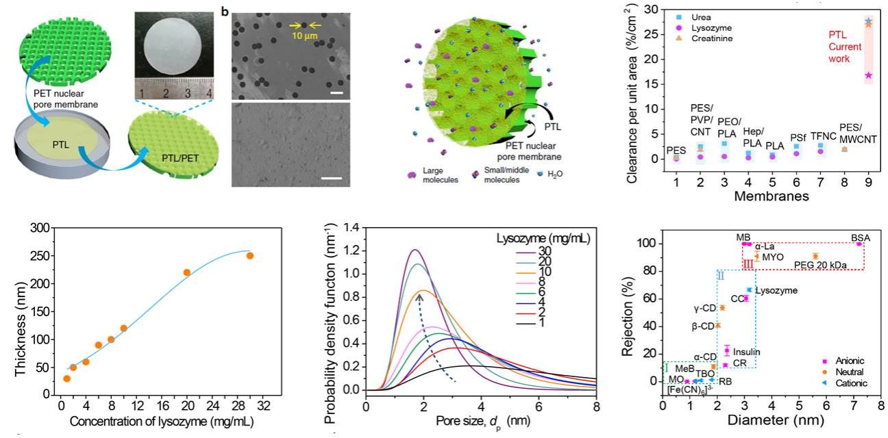 吸附分离材料主要应用于去除重金属离子,回收贵金属,血液透析,淀粉样蛋白膜是由溶菌酶在空气/水界面快速聚集形成的,具有可控制的厚度和平均孔径,可根据蛋白质浓度调整为1.8 ~ 3.2 nm。这种膜可以保留> 3nm的分子和颗粒,同时允许小分子以比现有材料快1~4个数量级的速度传输,相关成果发表在Cell Reports Physical ScienceMacromolecular Rapid Communications等学术期刊。联系人:杨发翠