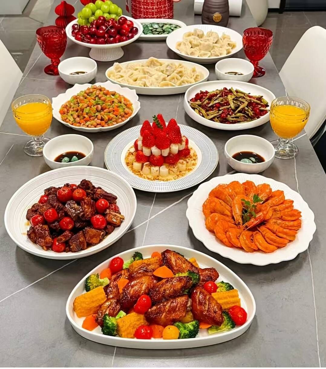 教职工们纷纷在微信群晒出自家精心准备的年夜饭,一道道色香味俱全的佳肴,承载着满满的幸福与祝福。红烧肉、清蒸鱼、饺子……每一道菜都蕴含着对生活的热爱和对新年的期待。大家在晒美食的同时,也用真挚的话语祝愿彼此在新的一年里身体健康、工作顺利、家庭幸福。