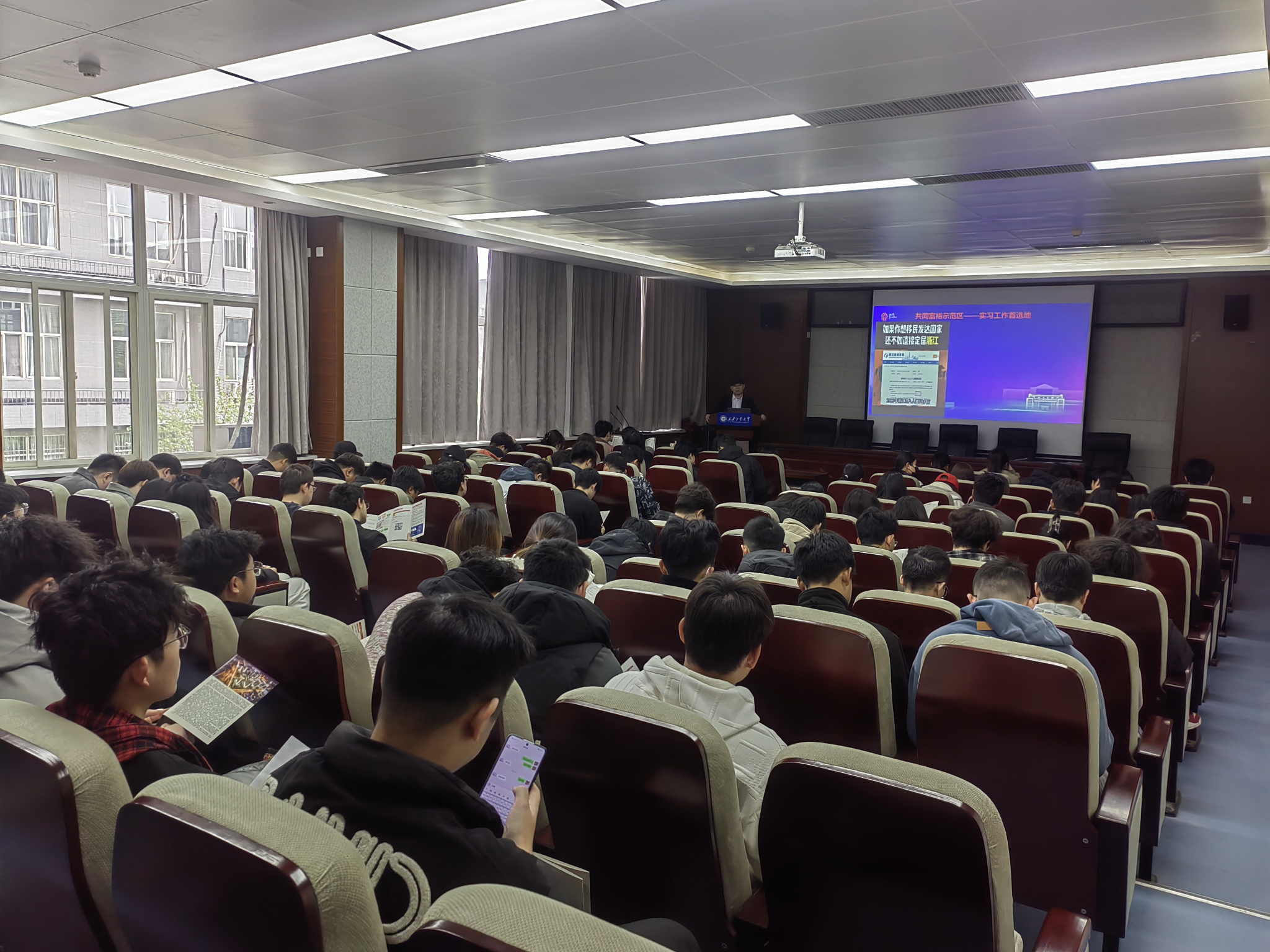 会后,大家一同前往工4-204会议室,对学院2025届毕业班未就业学生开展“东迁西归2.0”引才项目宣传,发放宣传资料100余份,并将永康市当前的人才政策在人才补贴、人才落户、医保就业、租房购房补贴等方面进行面对面零距离宣讲解答。